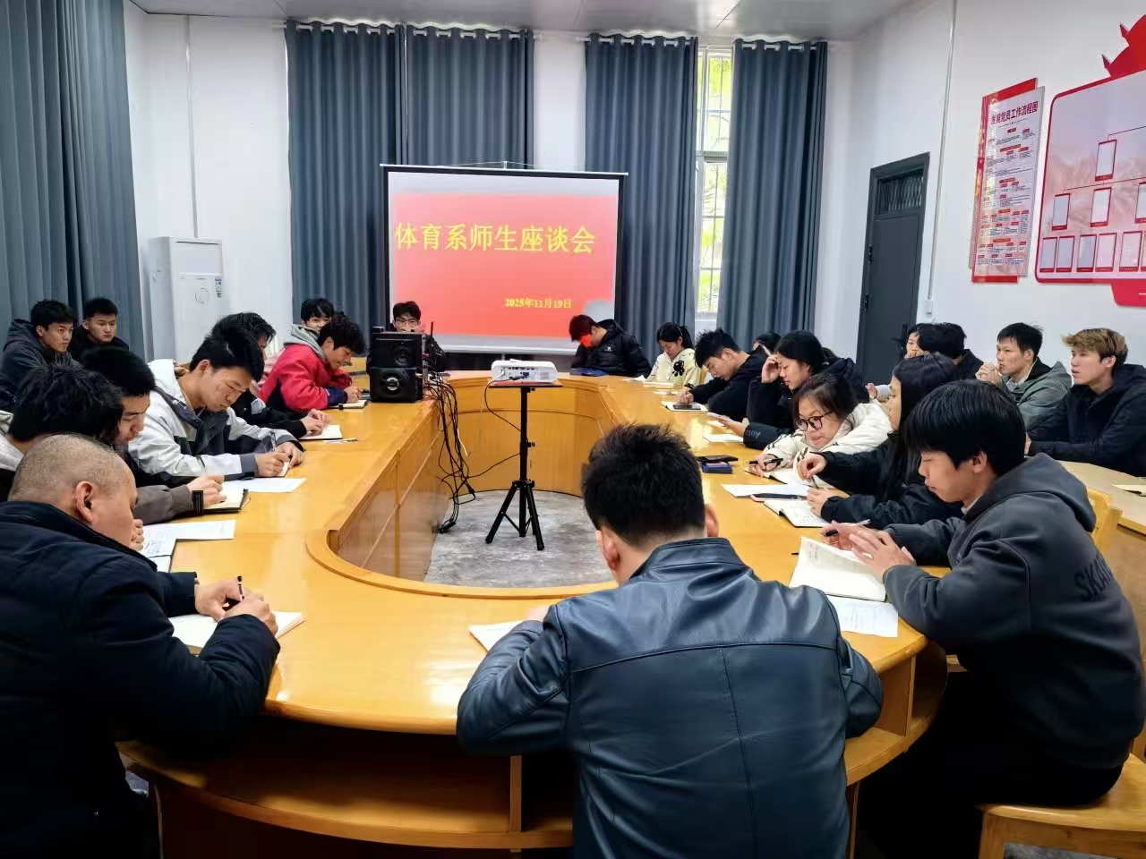 此次师生代表座谈会是我系教学质量监控与学风建设的重要举措为系部后续改进教学管理、优化育人服务提供了精准方向。下一步,体育系将持续把师生座谈会作为常态化工作推进,结合教学督导、学风督察等机制,及时收集并响应学生需求,不断完善教学服务体系,营造更优质的育人环境,助力学生成长成才,推动系部教育教学工作高质量发展。